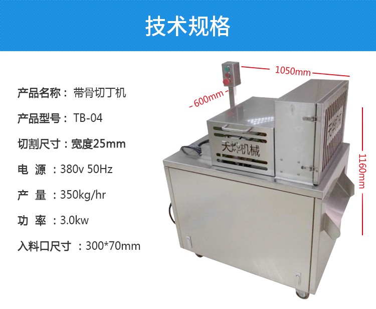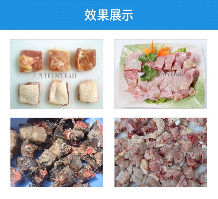 適用于-5—0℃的冷凍排骨切塊、凍五花肉、凍半片鴨半片雞切塊產品一次成型。